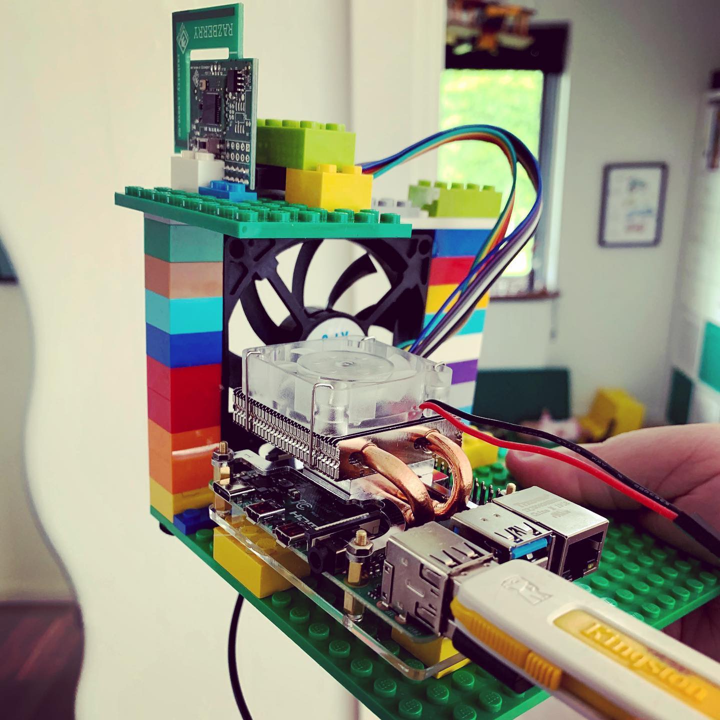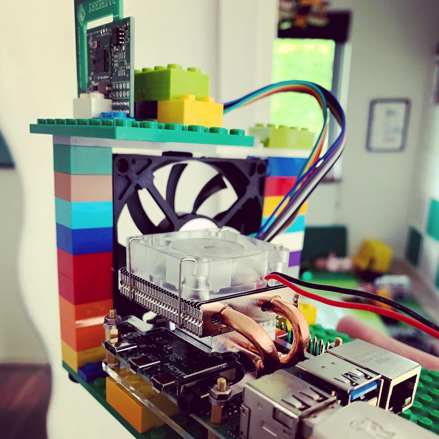 LEGO kan bruges til så meget. Her som en fin holder til to Raspberry Pi's, et z-wave board og lidt køling til sommervarmen 🙈👍.