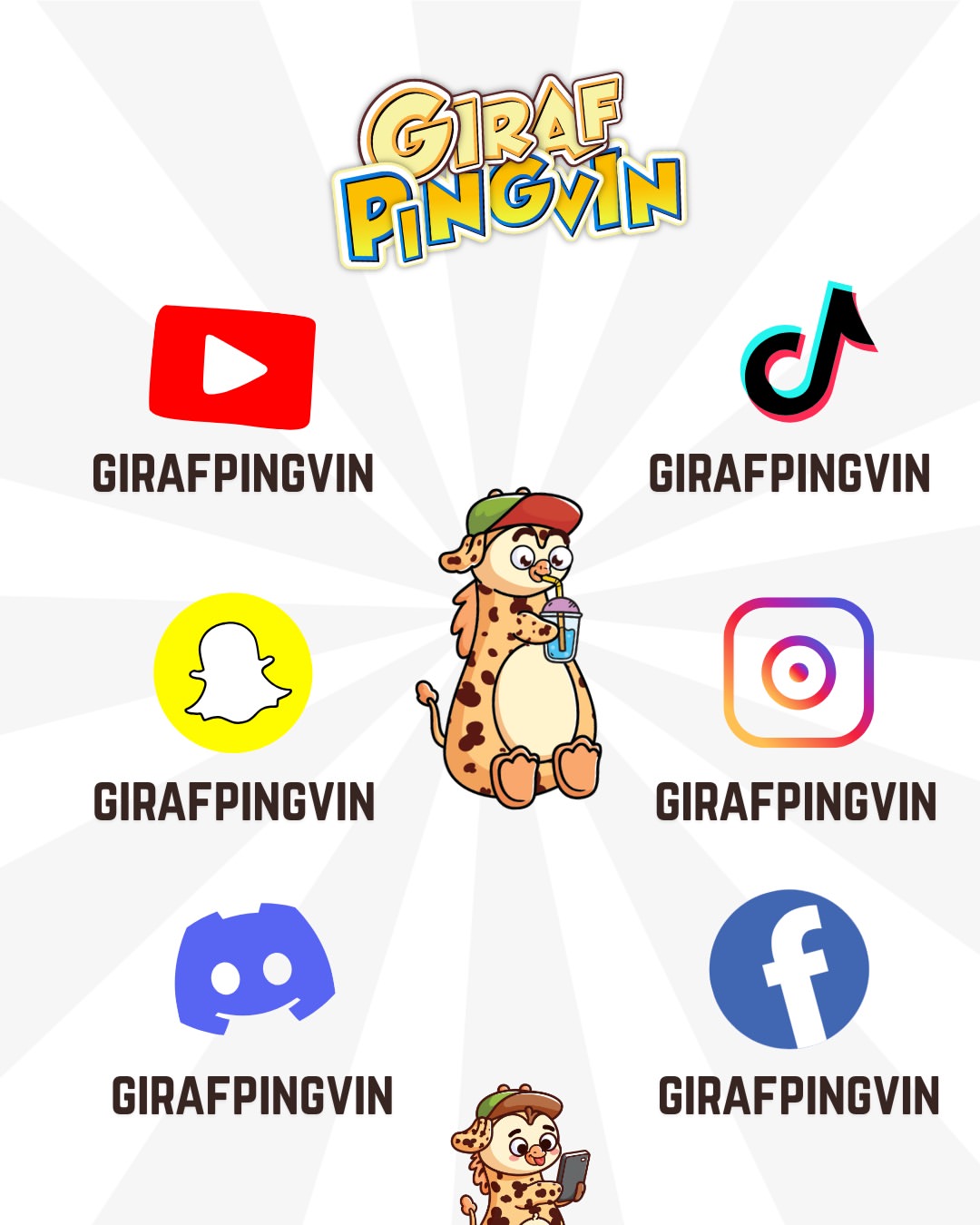 Alt sammen under @girafpingvin – samme navn, samme pletter, samme skøre hjerne 🥳✨