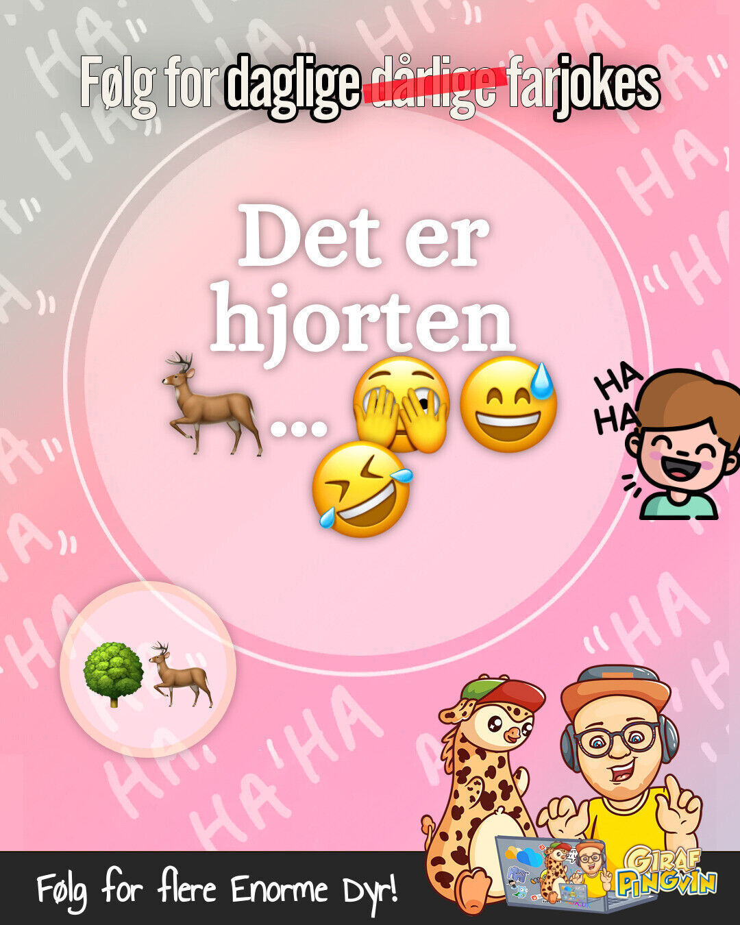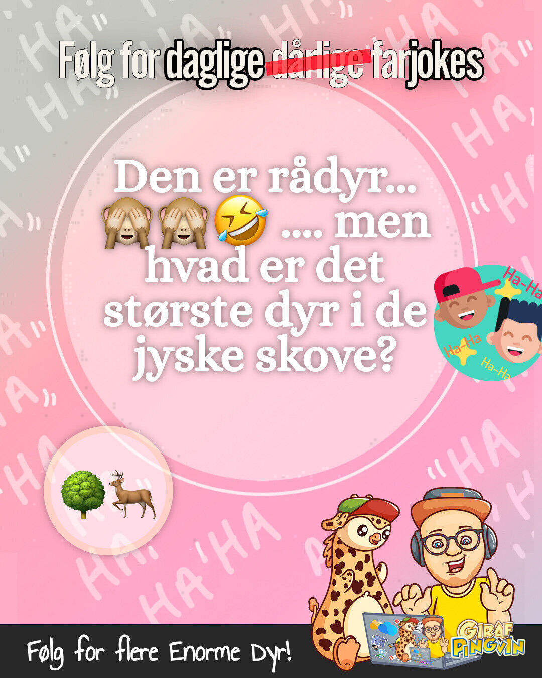 Og mens du troede, det ikke kunne blive bedre... 😜 Ved du, hvad det største dyr i de jyske skove er? Det' en orm! Ah ha! Hold op, girafpingvin har gjort det igen! 🐛🌲