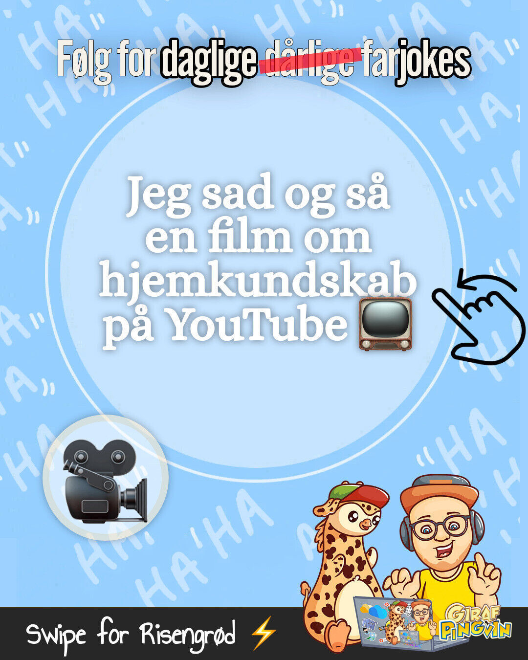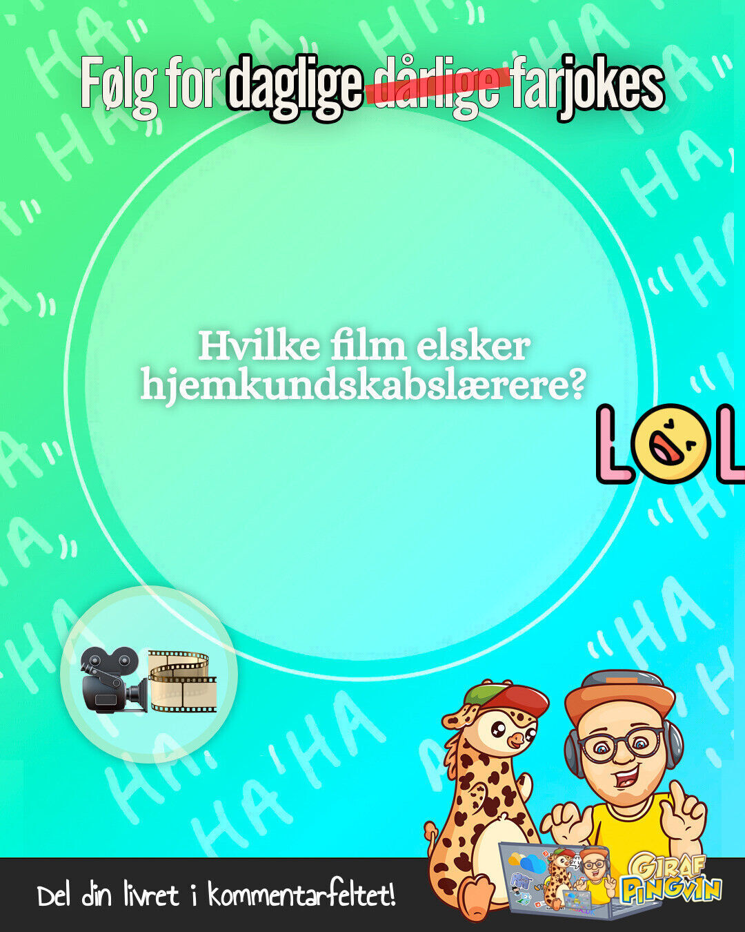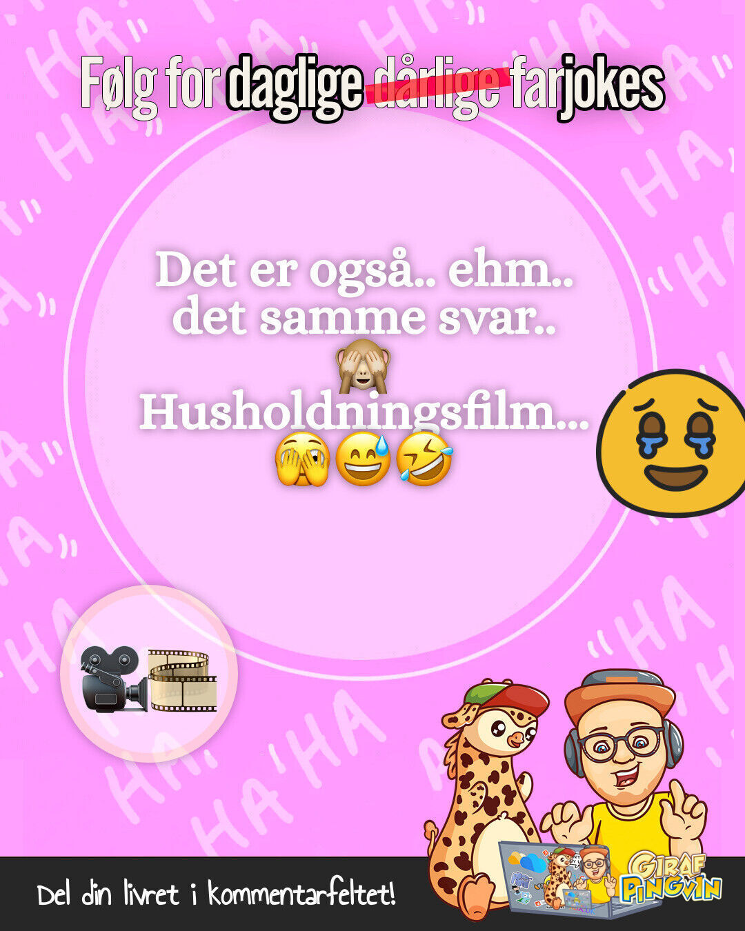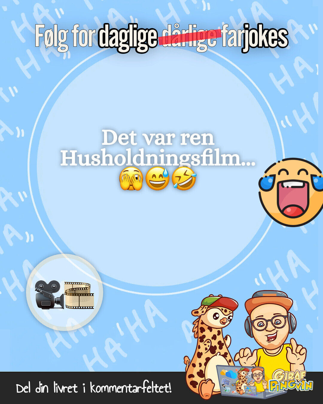 Hej mine girafpingviner! 🦒🐧 Husholdningsfilm: The Movie er farhumor på menuen i dag! 🍿 Skyd en DM hvis du har flere platte jokes. 🤪🎥❤️