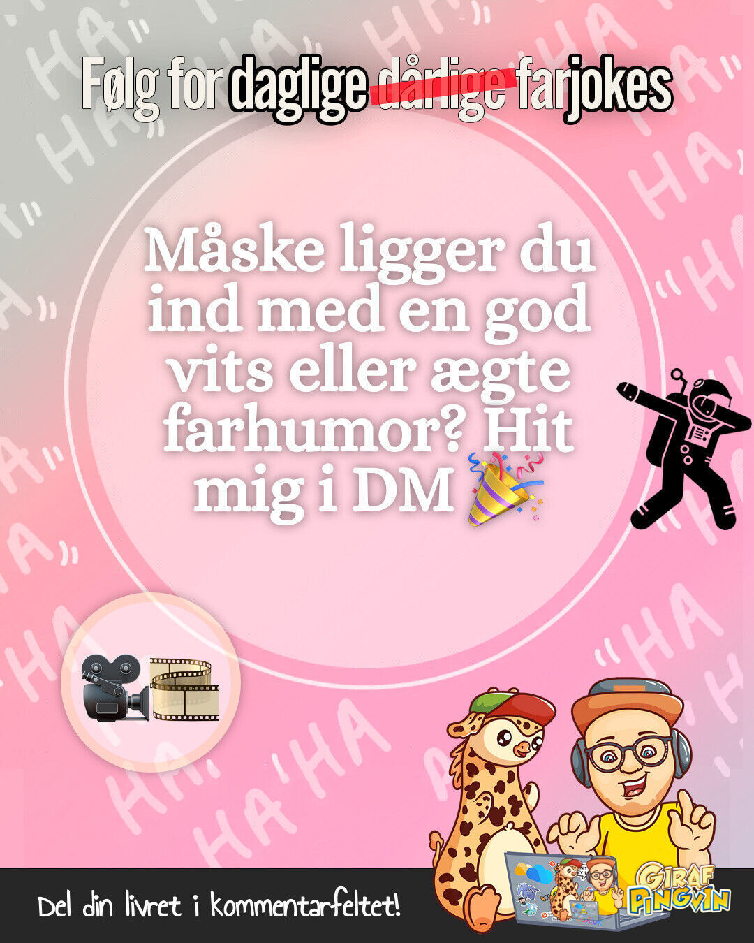 Tak fordi I er her og hænger ud i min verden af platte ordspil og farhumor. I varmer mit girafpingvin-hjerte 🦒🐧❤️
