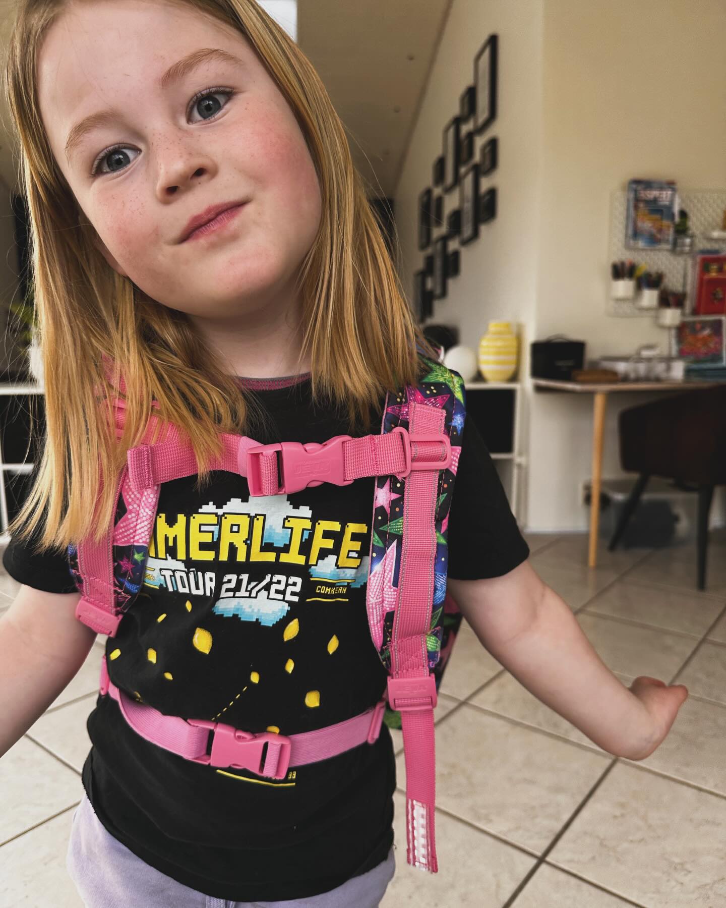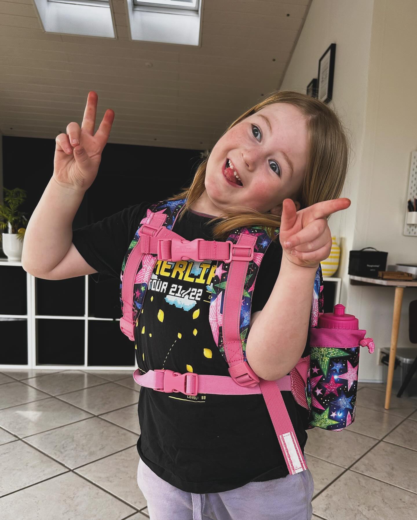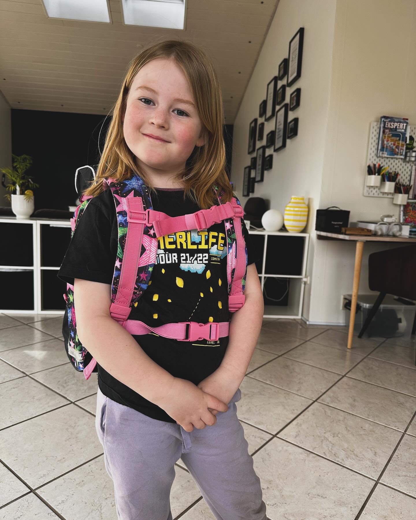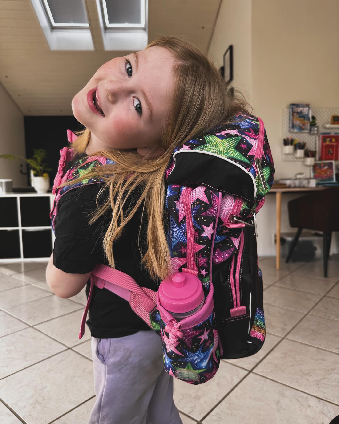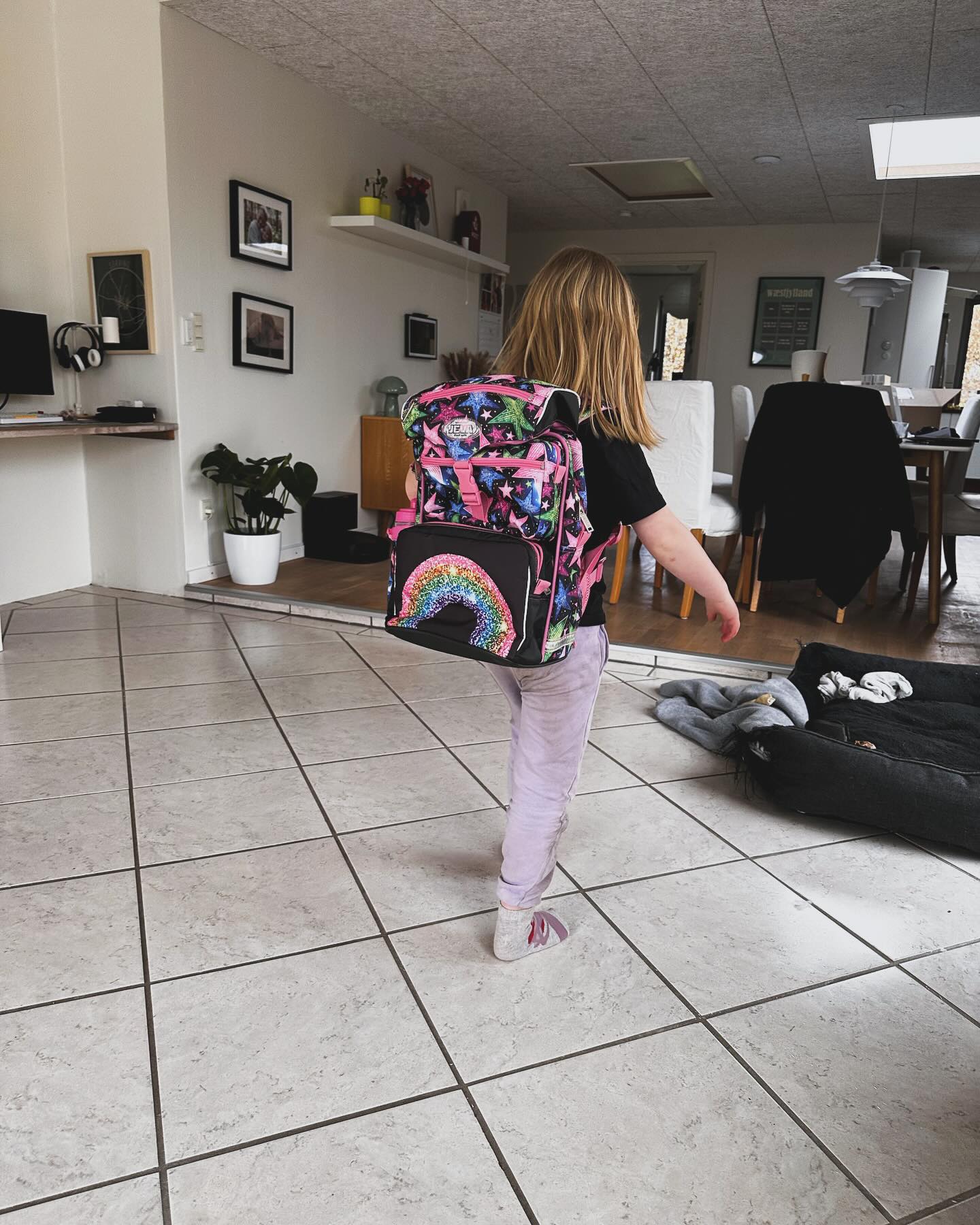 Tilde fik sin drømmetaske til skole! 🎒 Vi sparede 550 kr. online og har nu råd til nyt penalhus også. 🛍️💸📚✨