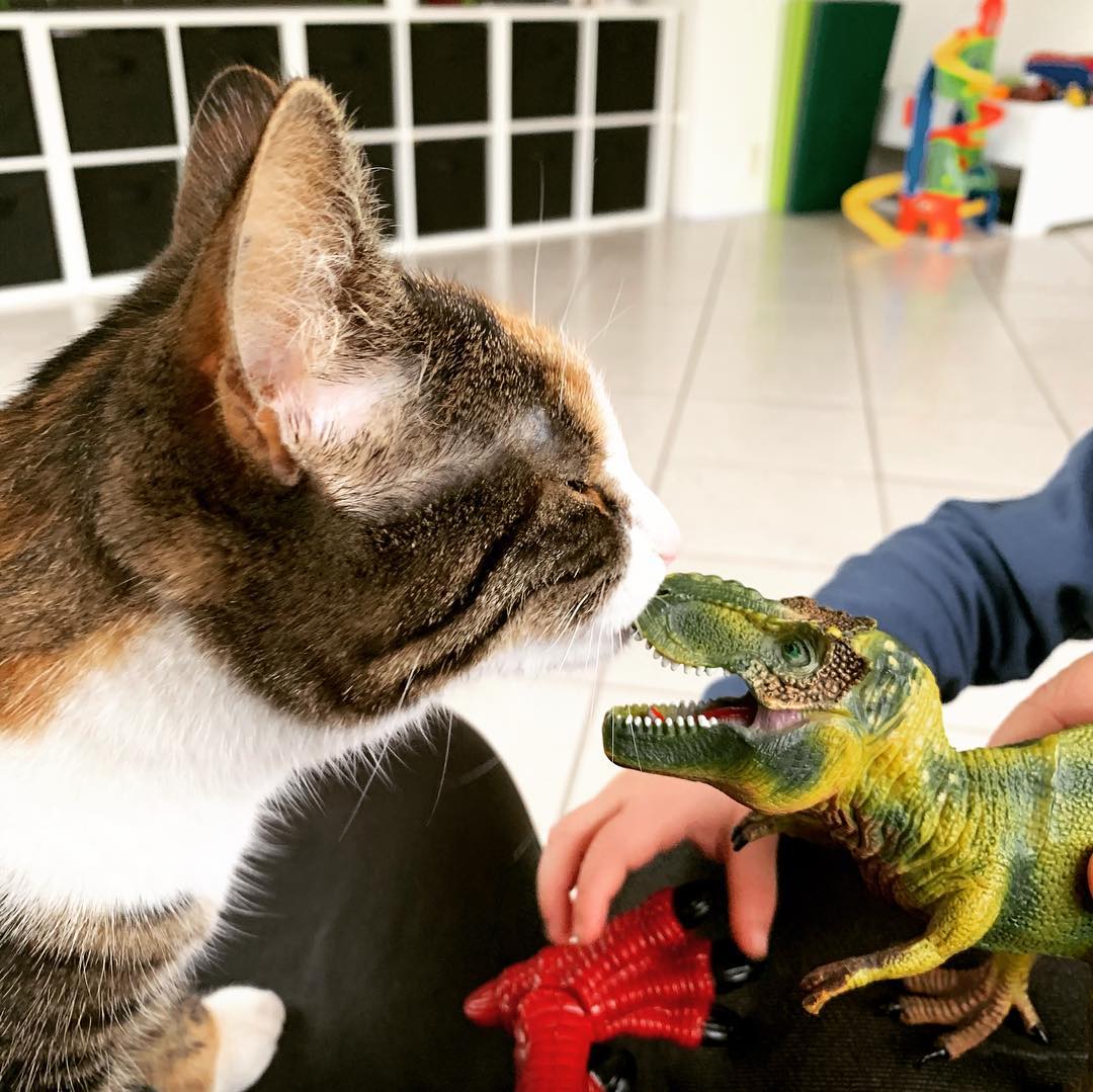 Hvem ville vinde en kamp mellem en kat og en dinosaur? Selvfølgelig, i virkelighedens verden, kunne en kat aldrig måle sig med en dinosaur, men forestil dig det spændende scenarie!