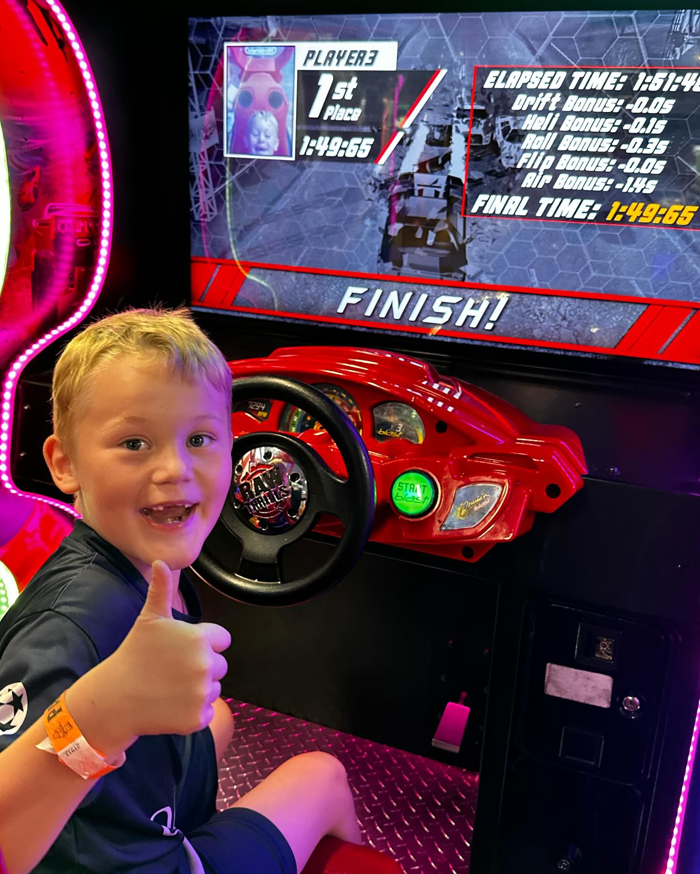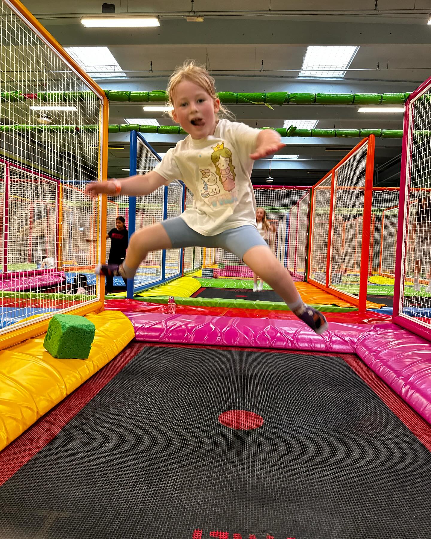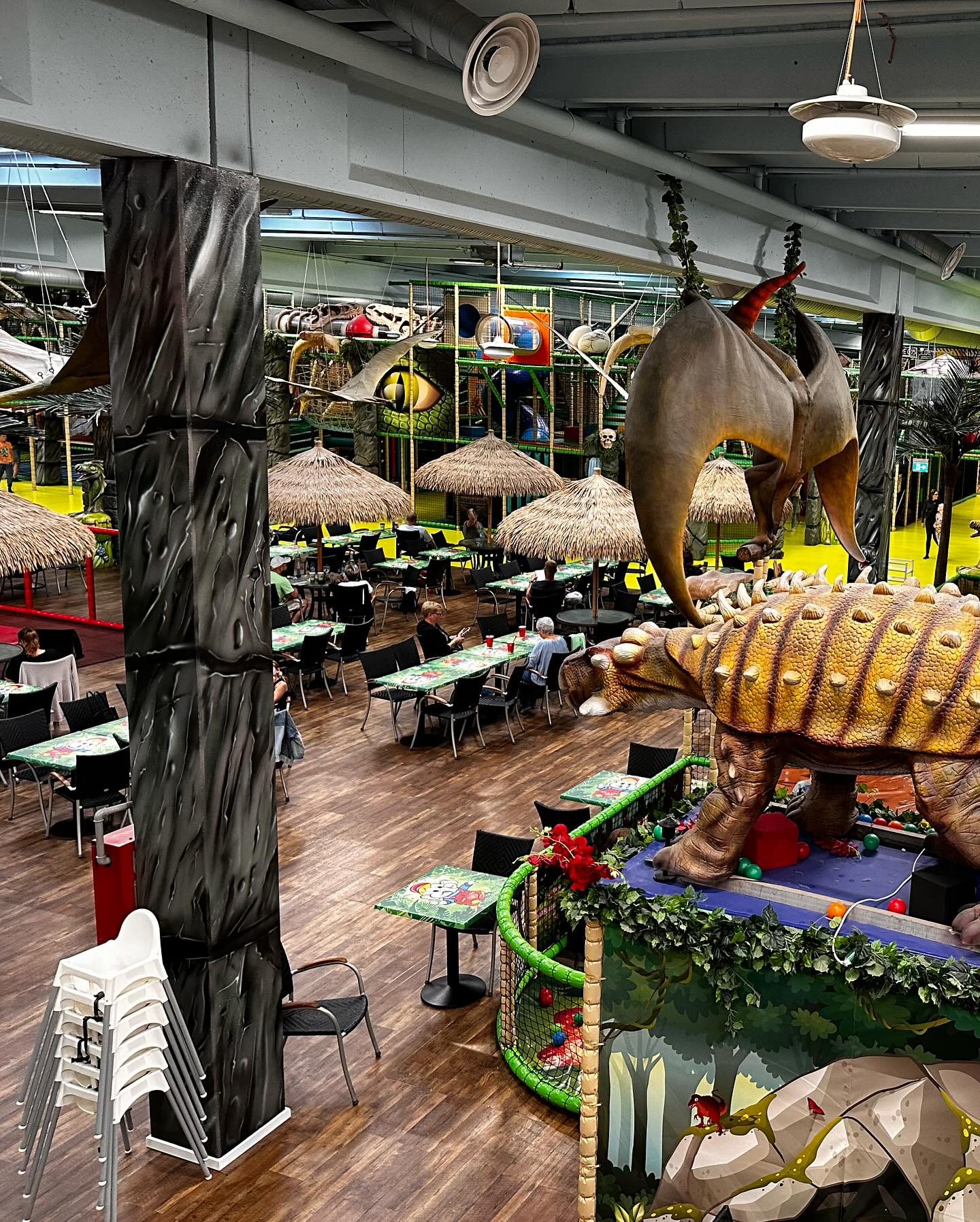 En hel dag i Danmarks største legeland: hoppeborge, klatretårne, lasertag og mere! Nu: trætte børn og afslapning med Barbie og FIFA. Perfekt regnvejrsdag! 🌧️🦖⚽
