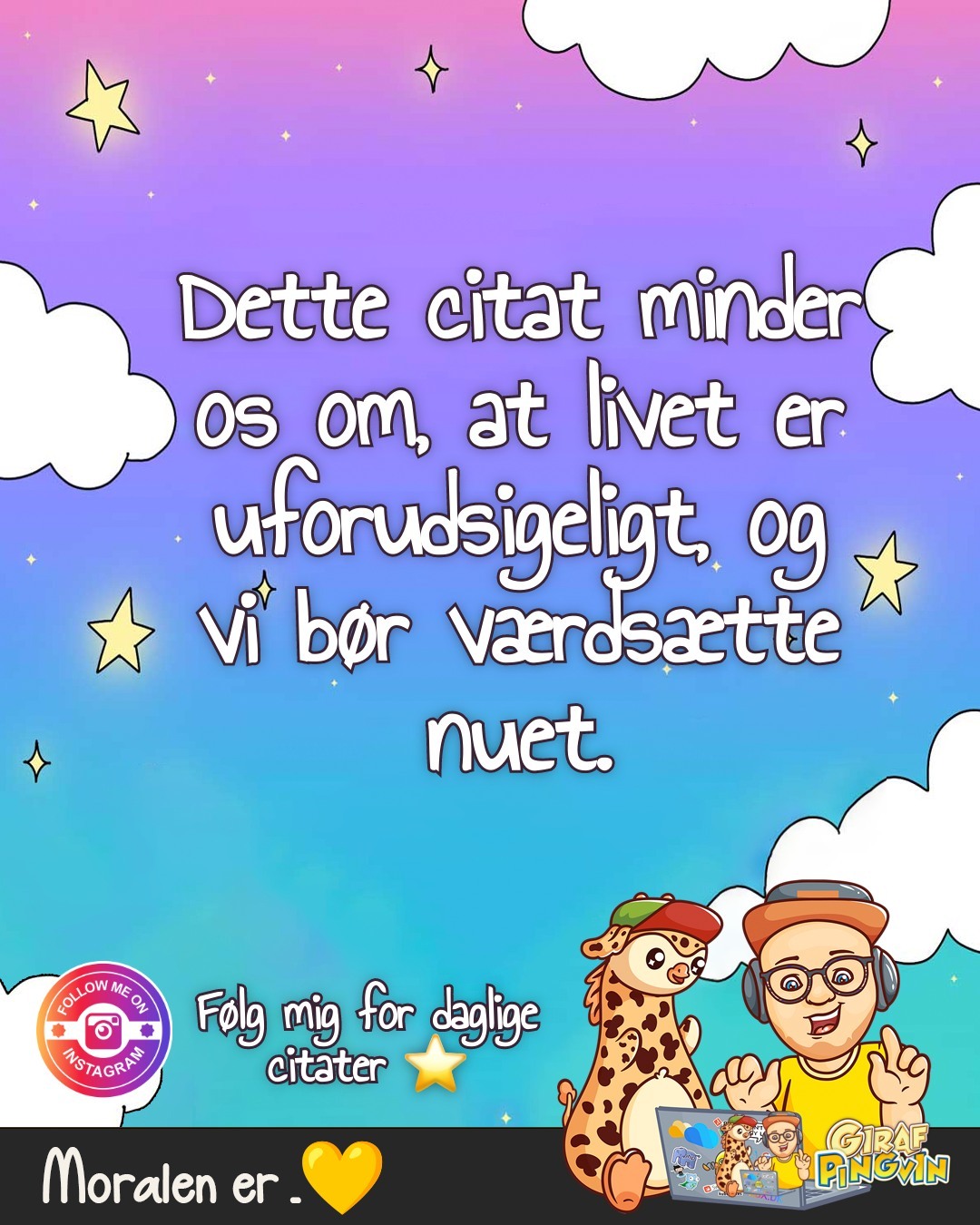 Tag et øjeblik: træk vejret, stop op og nyd nuet. Lad os påskønne skønheden i dag, og husk, at hver dag er en ny chance for at lære, vokse og elske. 💖🌱