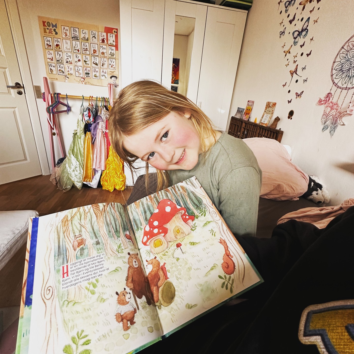 📖❤️ Tilde og jeg er vilde med Benny Bjørn, som tuller gennem Eventyrskoven! Tak @louisecastella & @camillakenyadk 🌳✨🐻💛