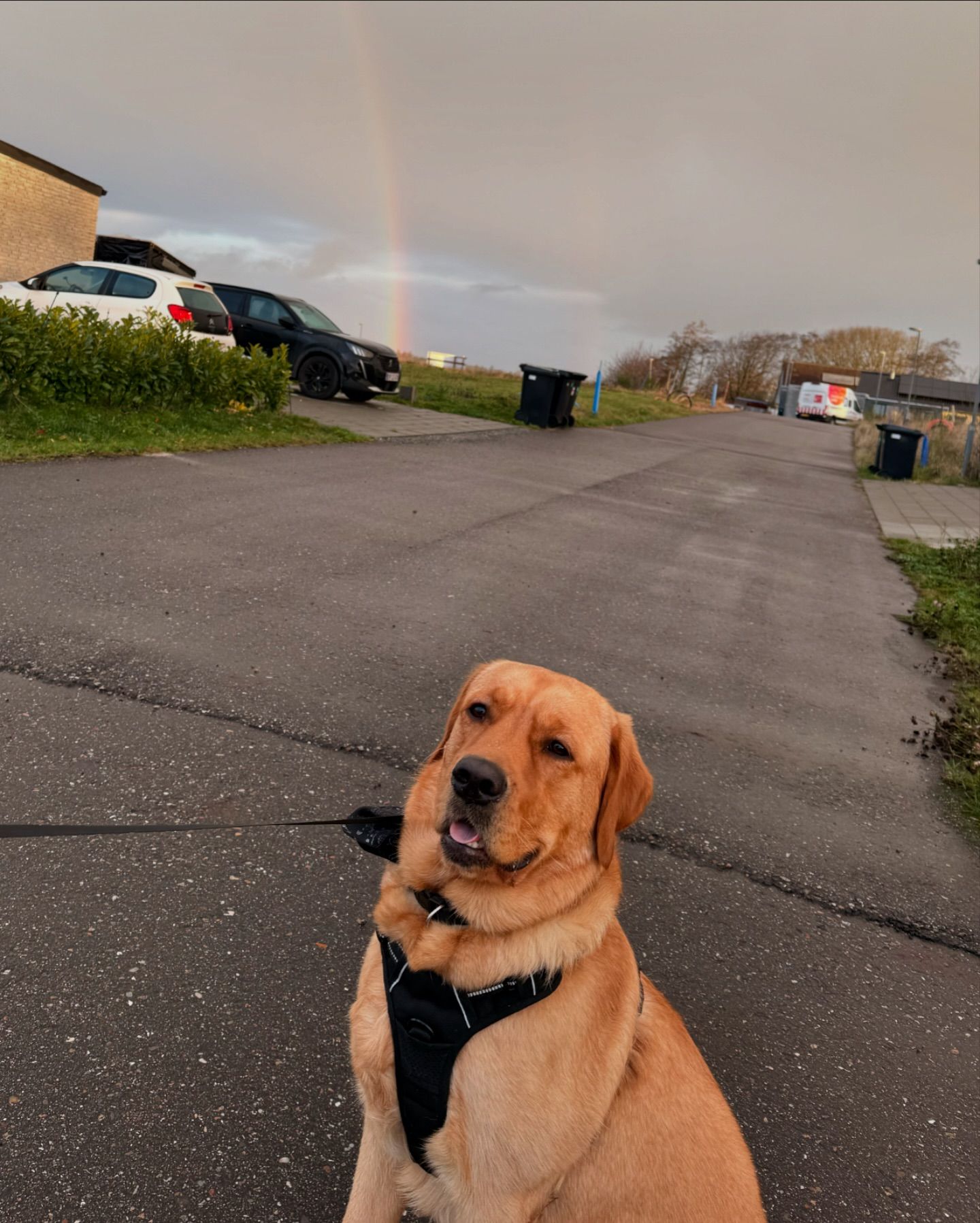 Magnus og jeg gik en skøn morgentur med Bahloo og så den flotteste regnbue - mon det var et tegn? 🙀🎉🎁🎈🌈🌈🌈
