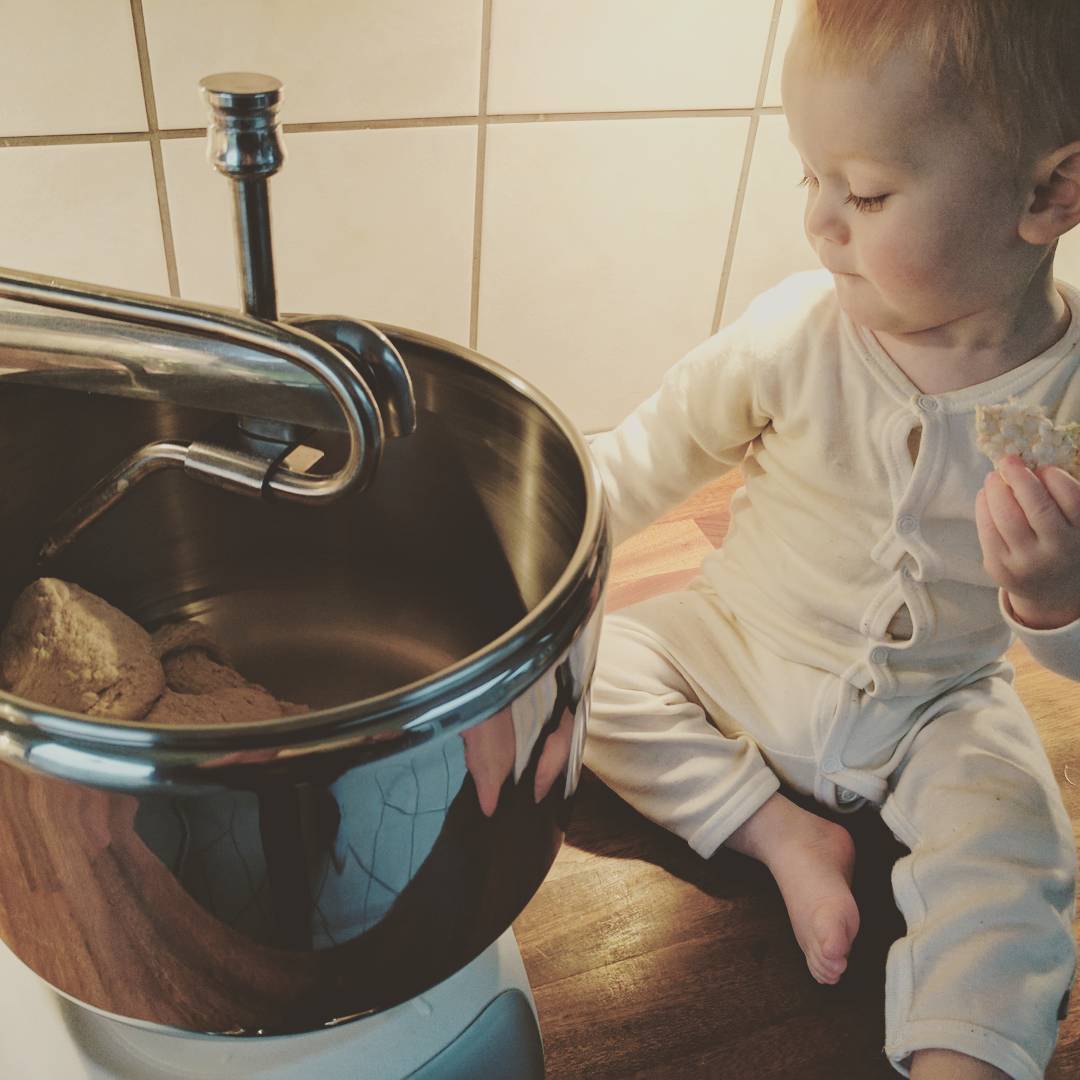 Magnus og far søndagshygger alene hjemme med at bage boller i nattøj. Det er tid til at nyde en stille og dejlig morgen sammen.