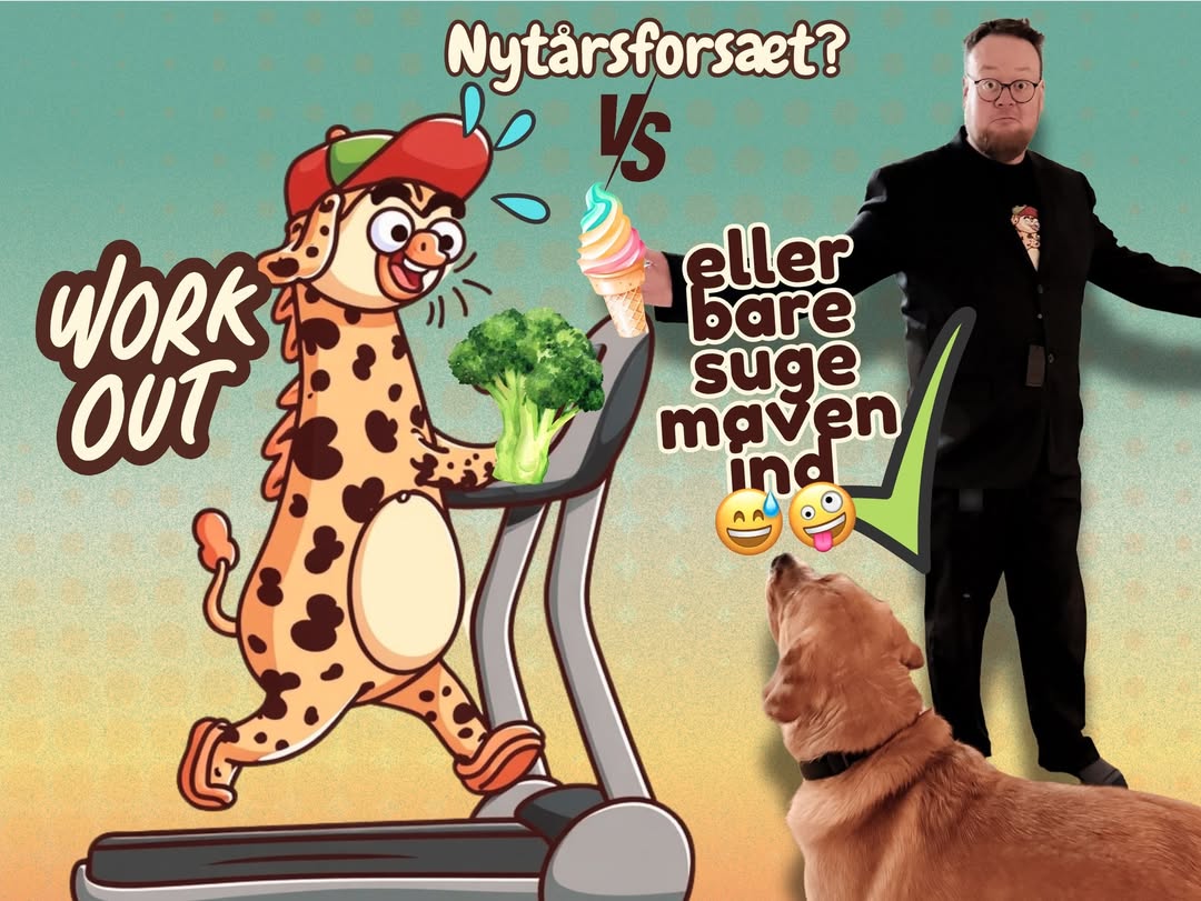 Så mit #motto for 2025 er simpelt: Sug maven lidt ind, gå efter dessertbordet, hold festen kørende 🎂💃✨ og så lige en tur på #spinning-cyklen et par gange om ugen, bare for balancen! 🤪🚴🏻♂️🥦💪