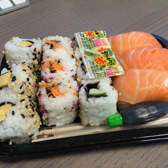 Sushi fra Føtex. Det smager bare ikke særlig godt... Der må gerne snart åbne en sushi shop i Storcenter Nord så vi kan få noget ordentlig fisk til frokost ;)
