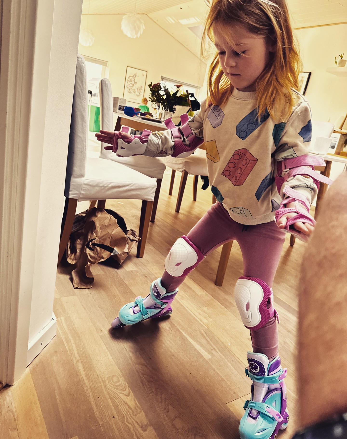 Tilde har længe ønsket sig rulleskøjter, og voila! I morges rullede et par glitrende rulleskøjter lige frem fra fars tryllehat 🎩🛼🛼💥🤪