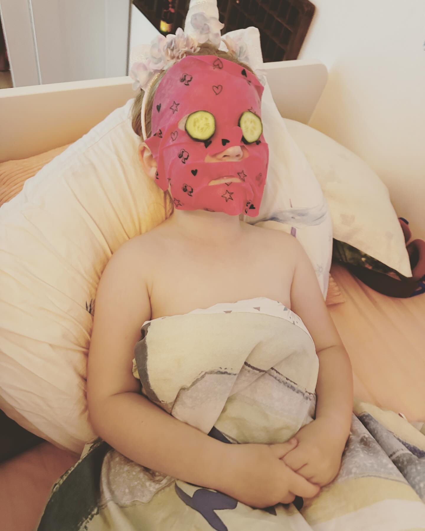 Hej venner! 👋 I går havde vi skruet op for hyggen med en vaskeægte hjemme-spa! Tilde gik all-in med ansigtsmaske, der havde mere glød end et nybagt snobrød 🥖 og fodbad, der fik alle tæerne til at danse samba! 💃