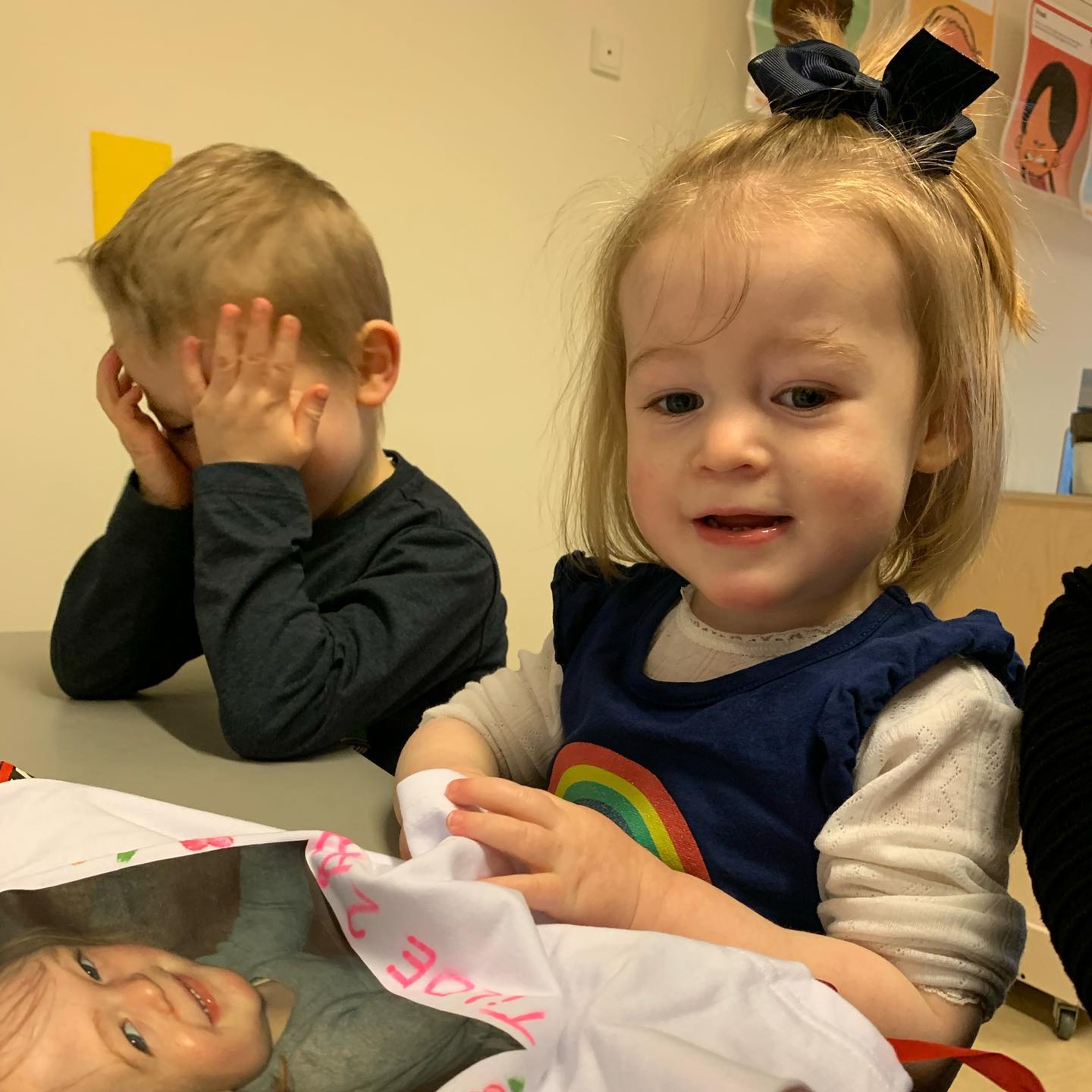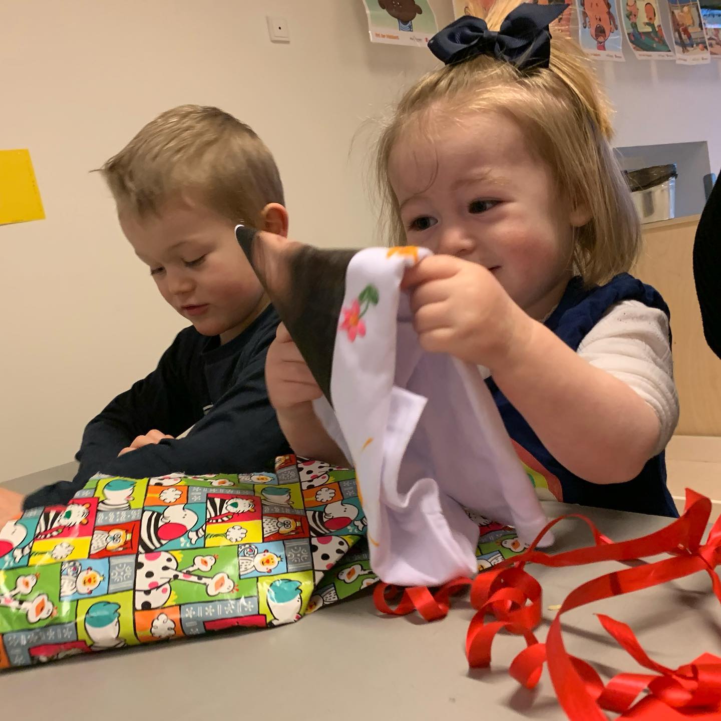 🎉🇩🇰🎁 Vi fejrede en særlig fødselsdag i vuggestuen i dag, fyldt med glæde og smil! Det er fantastisk at se, hvordan børnene nyder sådanne specielle øjeblikke.